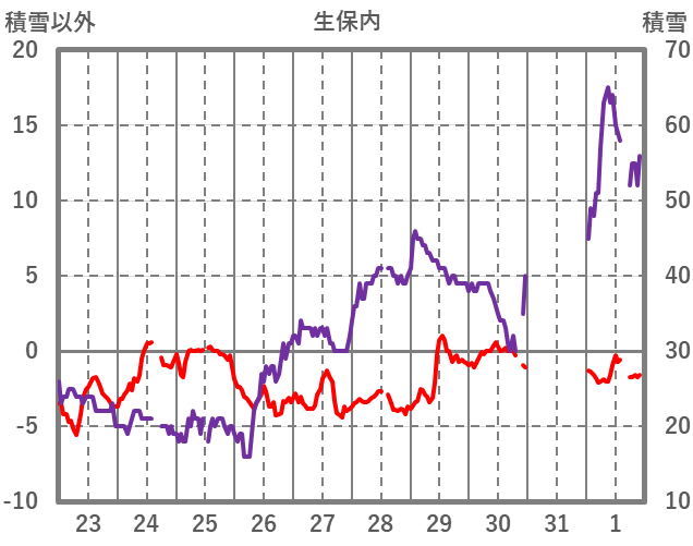 | 日 | 時 | 気温 | 降水 | 風向/風速 | 日照 | 積雪 | 降雪 |