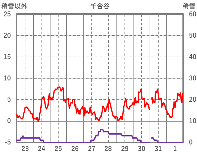 | 日 | 時 | 気温 | 降水 | 風向/風速 | 日照 | 積雪 | 降雪 |