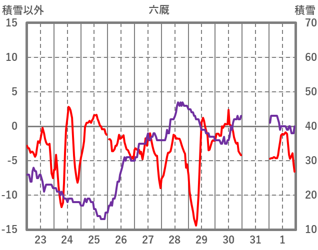 | 日 | 時 | 気温 | 降水 | 風向/風速 | 日照 | 積雪 | 降雪 |
