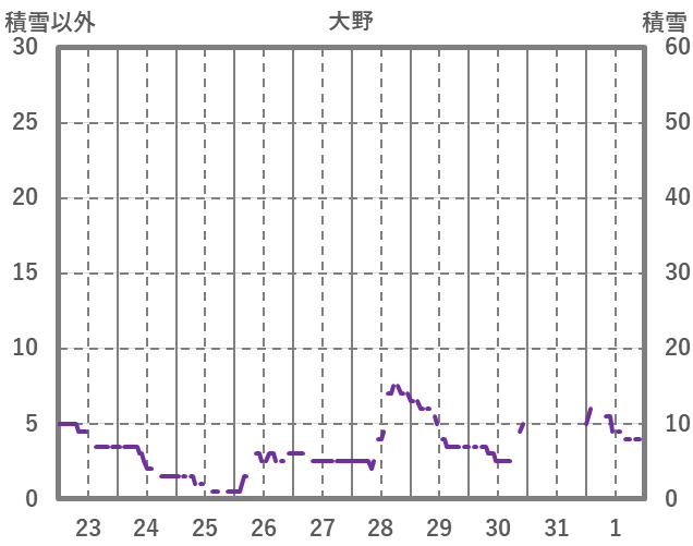 | 日 | 時 | 気温 | 降水 | 風向/風速 | 日照 | 積雪 | 降雪 |