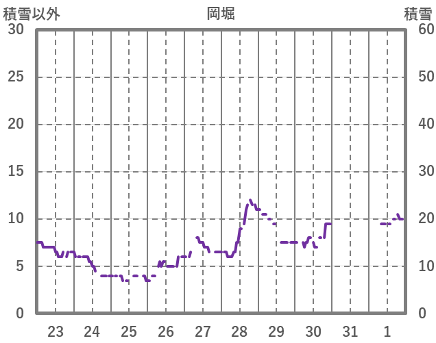 | 日 | 時 | 気温 | 降水 | 風向/風速 | 日照 | 積雪 | 降雪 |