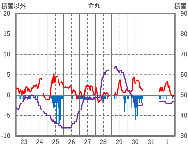 | 日 | 時 | 気温 | 降水 | 風向/風速 | 日照 | 積雪 | 降雪 |