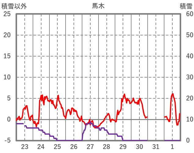 | 日 | 時 | 気温 | 降水 | 風向/風速 | 日照 | 積雪 | 降雪 |
