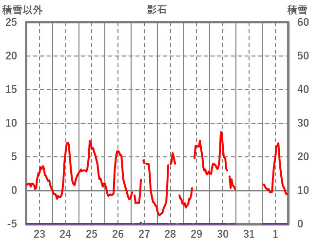 | 日 | 時 | 気温 | 降水 | 風向/風速 | 日照 | 積雪 | 降雪 |