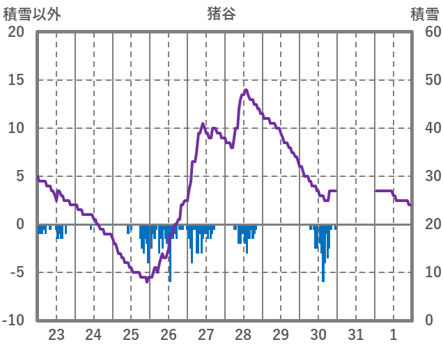 | 日 | 時 | 気温 | 降水 | 風向/風速 | 日照 | 積雪 | 降雪 |