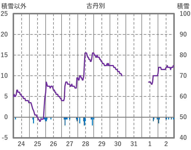 | 日 | 時 | 気温 | 降水 | 風向/風速 | 日照 | 積雪 | 降雪 |