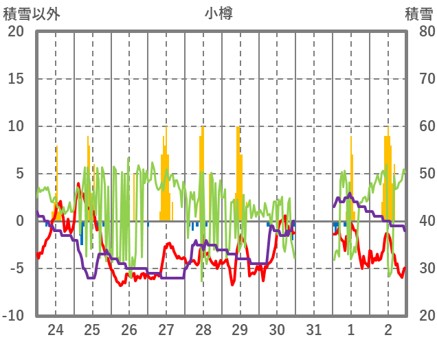 | 日 | 時 | 気温 | 降水 | 風向/風速 | 日照 | 積雪 | 降雪 |
