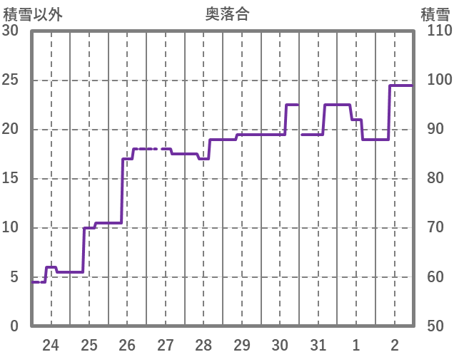| 日 | 時 | 気温 | 降水 | 風向/風速 | 日照 | 積雪 | 降雪 |