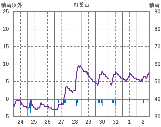 | 日 | 時 | 気温 | 降水 | 風向/風速 | 日照 | 積雪 | 降雪 |