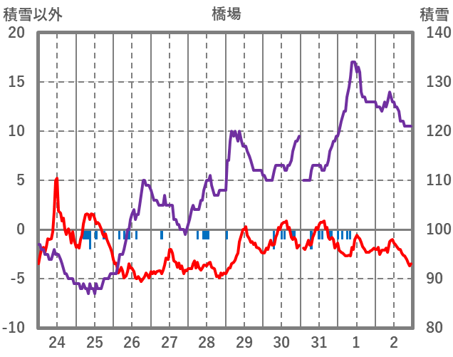 | 日 | 時 | 気温 | 降水 | 風向/風速 | 日照 | 積雪 | 降雪 |