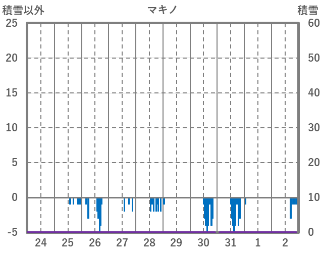 | 日 | 時 | 気温 | 降水 | 風向/風速 | 日照 | 積雪 | 降雪 |