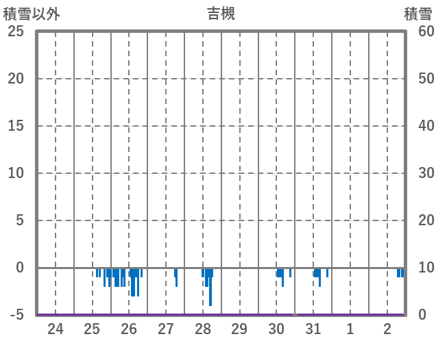 | 日 | 時 | 気温 | 降水 | 風向/風速 | 日照 | 積雪 | 降雪 |