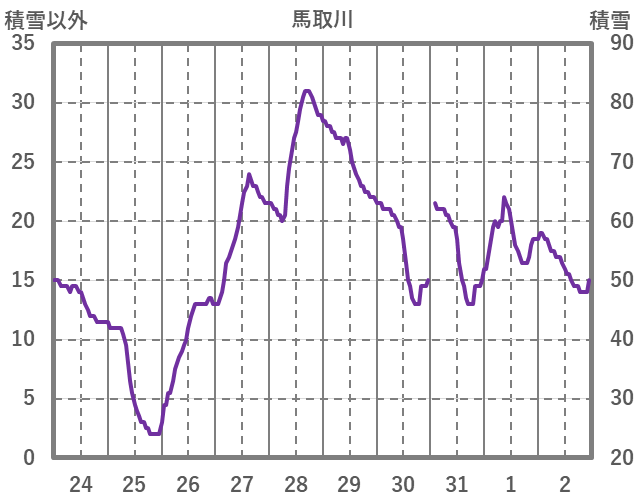 | 日 | 時 | 気温 | 降水 | 風向/風速 | 日照 | 積雪 | 降雪 |