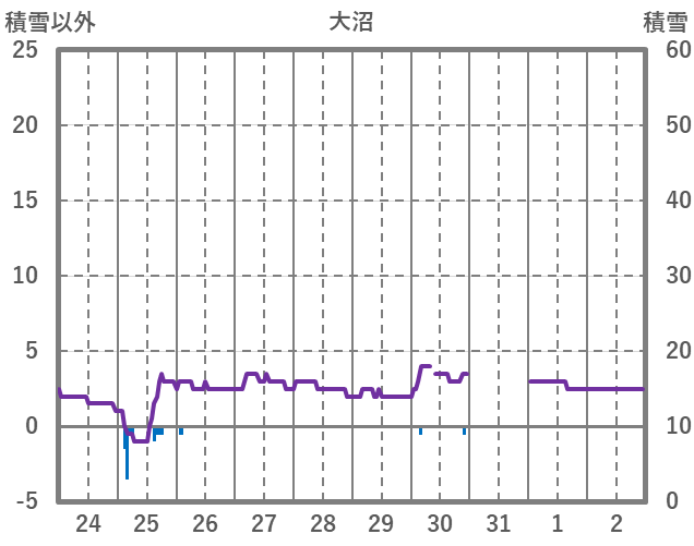| 日 | 時 | 気温 | 降水 | 風向/風速 | 日照 | 積雪 | 降雪 |