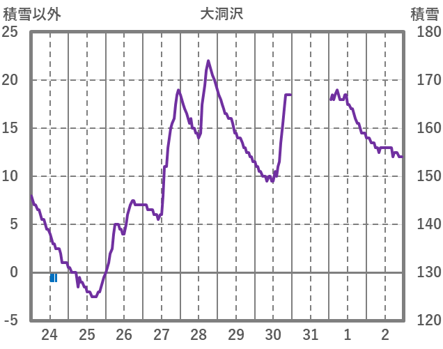 | 日 | 時 | 気温 | 降水 | 風向/風速 | 日照 | 積雪 | 降雪 |