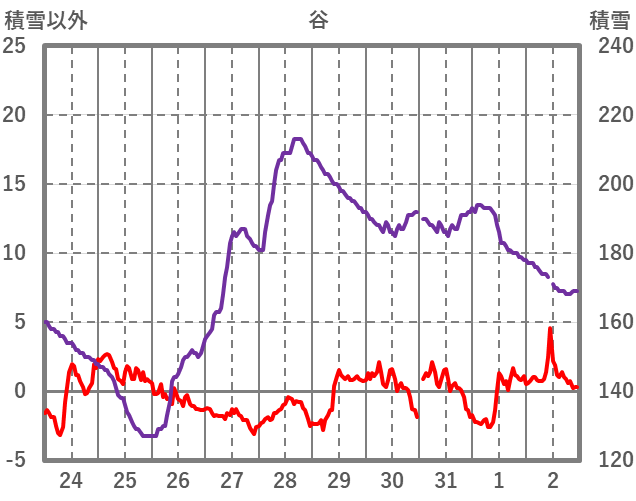 | 日 | 時 | 気温 | 降水 | 風向/風速 | 日照 | 積雪 | 降雪 |