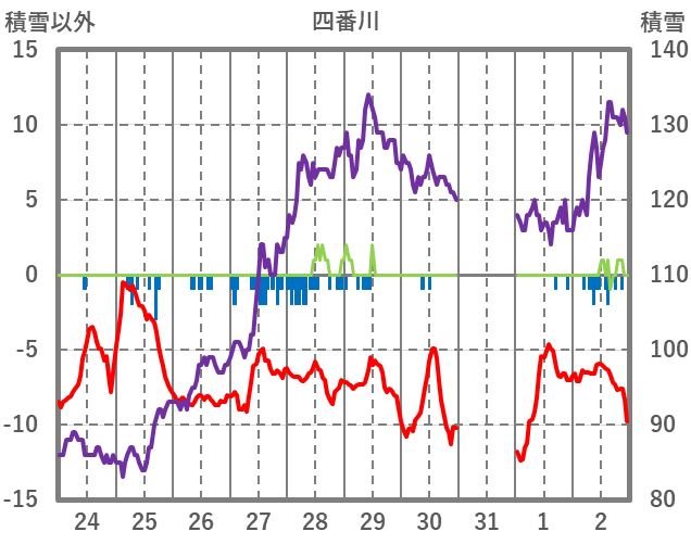| 日 | 時 | 気温 | 降水 | 風向/風速 | 日照 | 積雪 | 降雪 |
