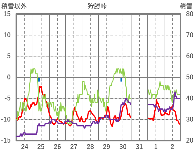 | 日 | 時 | 気温 | 降水 | 風向/風速 | 日照 | 積雪 | 降雪 |