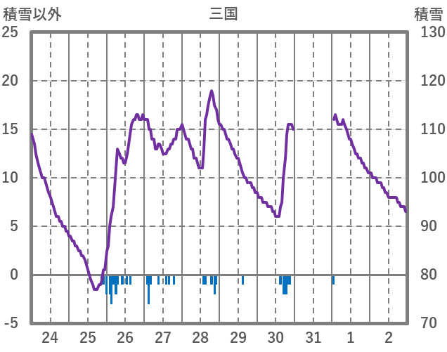 | 日 | 時 | 気温 | 降水 | 風向/風速 | 日照 | 積雪 | 降雪 |