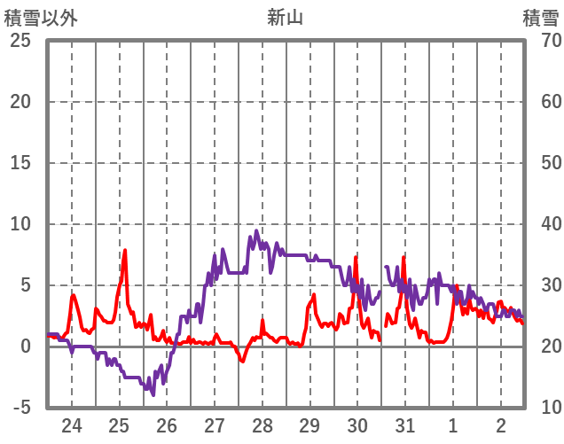 | 日 | 時 | 気温 | 降水 | 風向/風速 | 日照 | 積雪 | 降雪 |