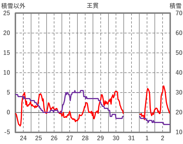 | 日 | 時 | 気温 | 降水 | 風向/風速 | 日照 | 積雪 | 降雪 |