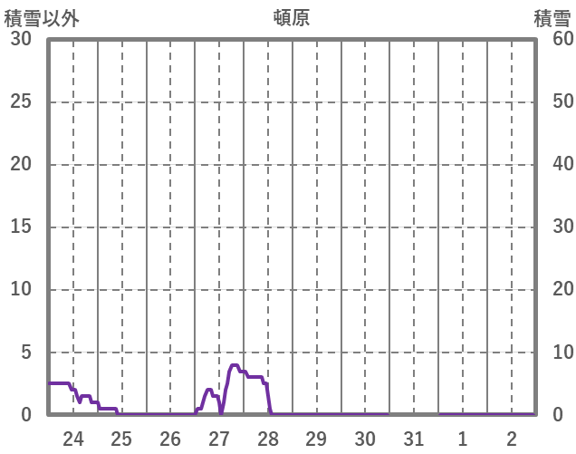 | 日 | 時 | 気温 | 降水 | 風向/風速 | 日照 | 積雪 | 降雪 |