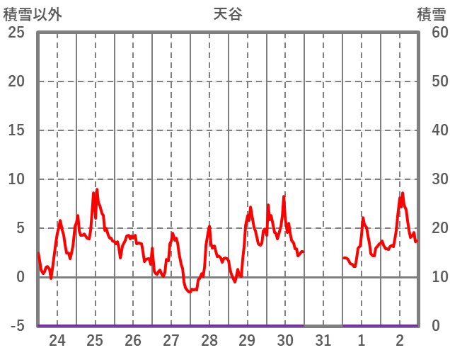 | 日 | 時 | 気温 | 降水 | 風向/風速 | 日照 | 積雪 | 降雪 |