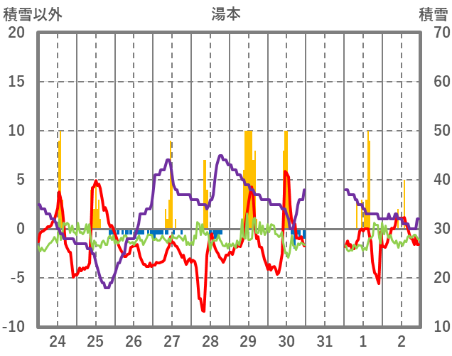 | 日 | 時 | 気温 | 降水 | 風向/風速 | 日照 | 積雪 | 降雪 |