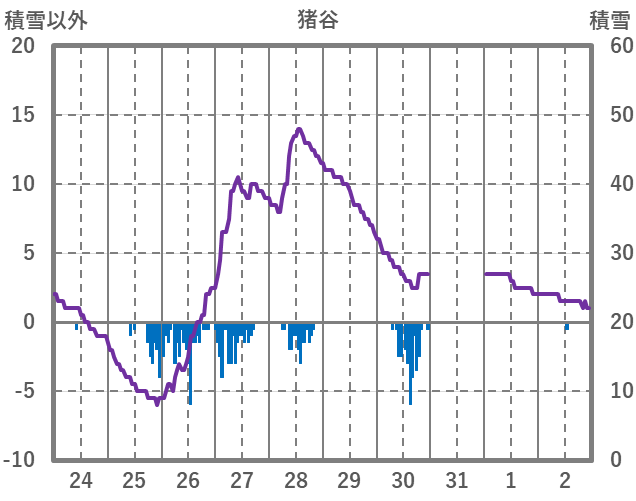 | 日 | 時 | 気温 | 降水 | 風向/風速 | 日照 | 積雪 | 降雪 |