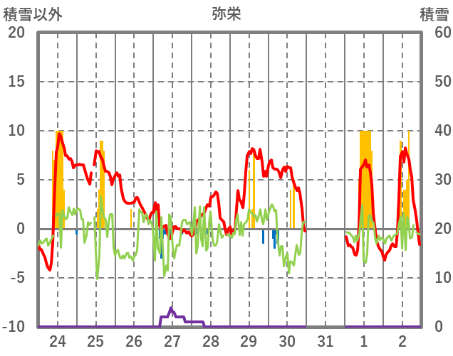 | 日 | 時 | 気温 | 降水 | 風向/風速 | 日照 | 積雪 | 降雪 |
