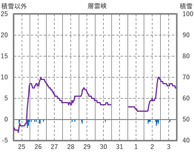 | 日 | 時 | 気温 | 降水 | 風向/風速 | 日照 | 積雪 | 降雪 |