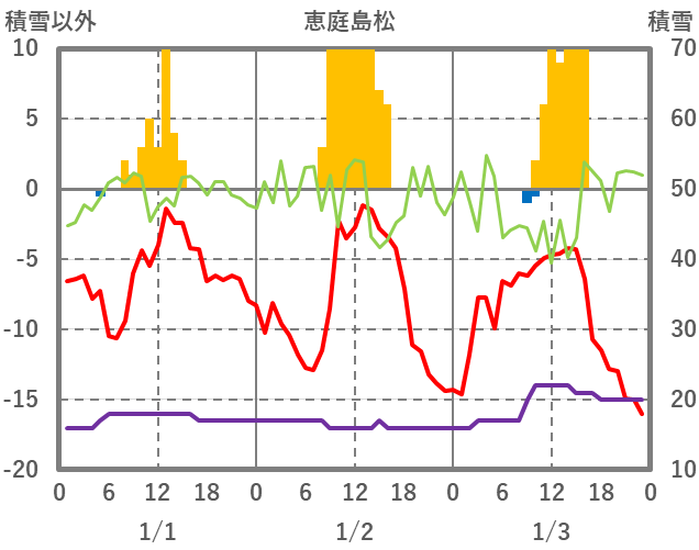 | 日 | 時 | 気温 | 降水 | 風向/風速 | 日照 | 積雪 | 降雪 |