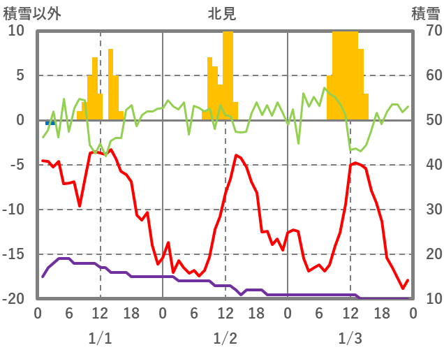 | 日 | 時 | 気温 | 降水 | 風向/風速 | 日照 | 積雪 | 降雪 |