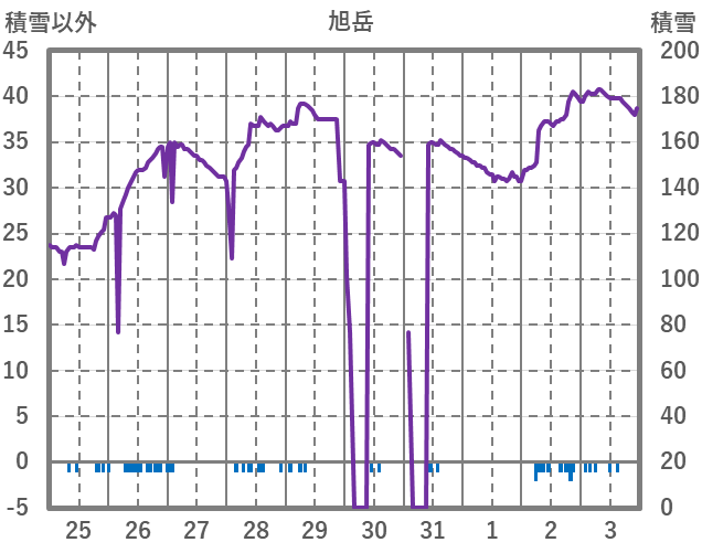 | 日 | 時 | 気温 | 降水 | 風向/風速 | 日照 | 積雪 | 降雪 |