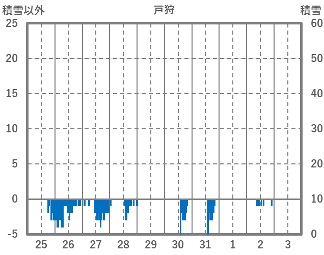 | 日 | 時 | 気温 | 降水 | 風向/風速 | 日照 | 積雪 | 降雪 |