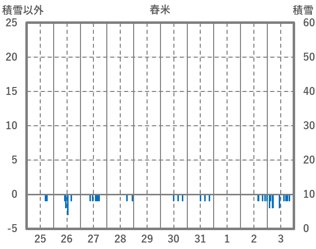 | 日 | 時 | 気温 | 降水 | 風向/風速 | 日照 | 積雪 | 降雪 |