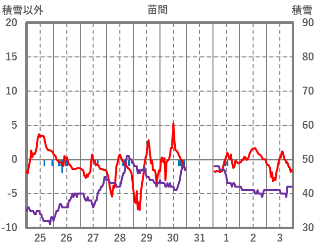 | 日 | 時 | 気温 | 降水 | 風向/風速 | 日照 | 積雪 | 降雪 |