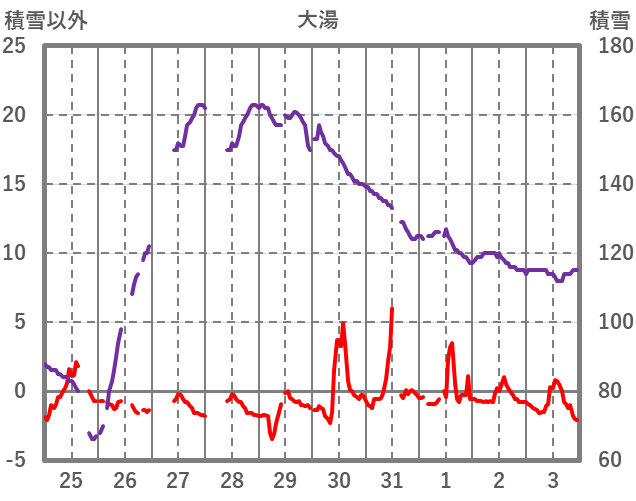 | 日 | 時 | 気温 | 降水 | 風向/風速 | 日照 | 積雪 | 降雪 |