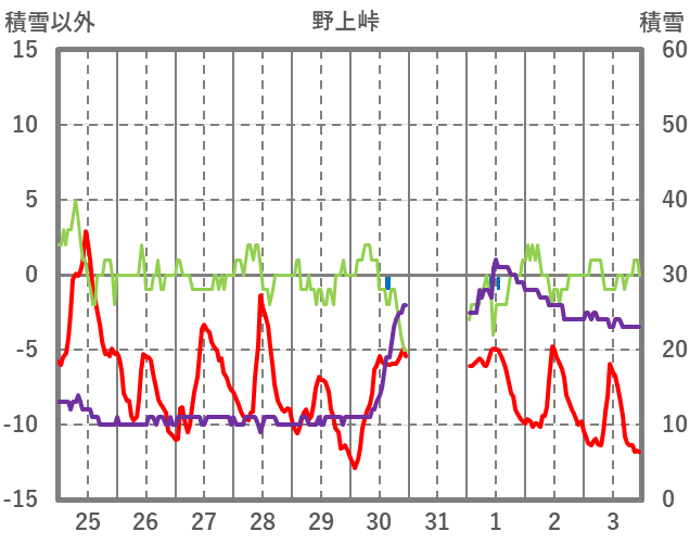 | 日 | 時 | 気温 | 降水 | 風向/風速 | 日照 | 積雪 | 降雪 |