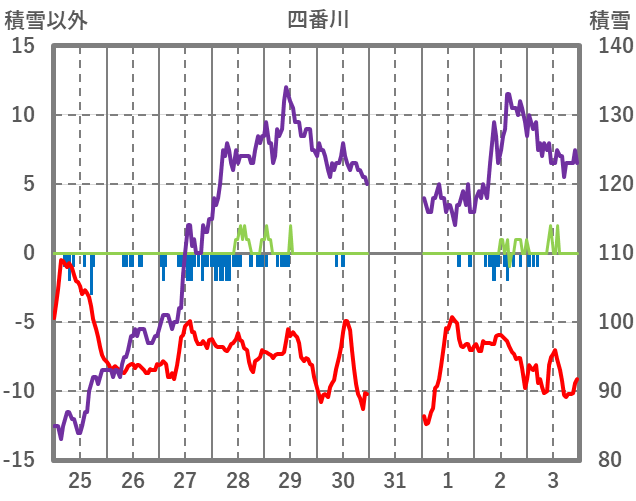 | 日 | 時 | 気温 | 降水 | 風向/風速 | 日照 | 積雪 | 降雪 |