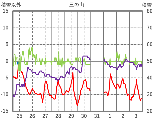 | 日 | 時 | 気温 | 降水 | 風向/風速 | 日照 | 積雪 | 降雪 |