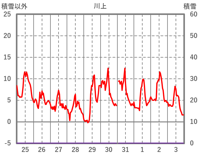 | 日 | 時 | 気温 | 降水 | 風向/風速 | 日照 | 積雪 | 降雪 |