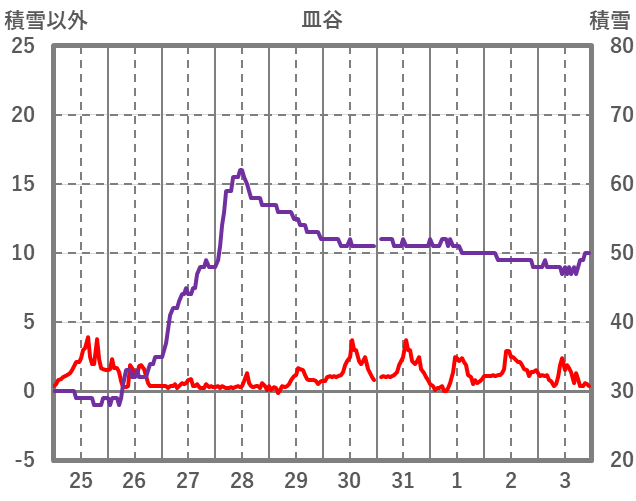 | 日 | 時 | 気温 | 降水 | 風向/風速 | 日照 | 積雪 | 降雪 |