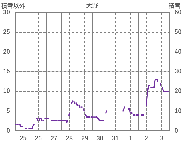| 日 | 時 | 気温 | 降水 | 風向/風速 | 日照 | 積雪 | 降雪 |