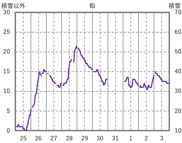 | 日 | 時 | 気温 | 降水 | 風向/風速 | 日照 | 積雪 | 降雪 |