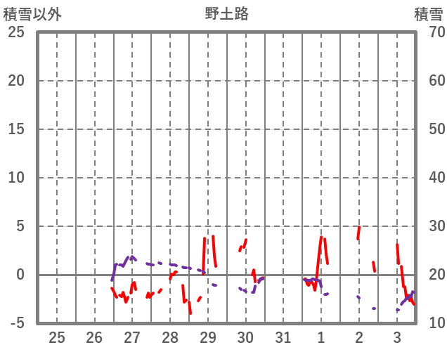 | 日 | 時 | 気温 | 降水 | 風向/風速 | 日照 | 積雪 | 降雪 |