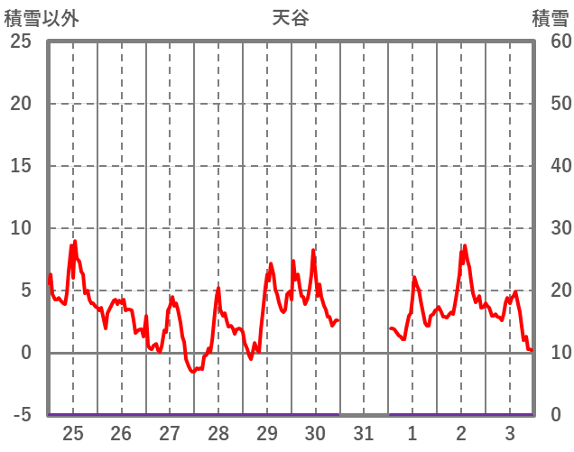 | 日 | 時 | 気温 | 降水 | 風向/風速 | 日照 | 積雪 | 降雪 |
