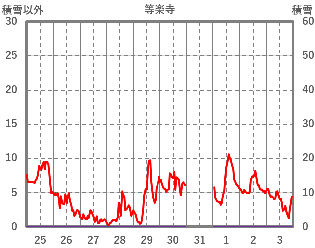 | 日 | 時 | 気温 | 降水 | 風向/風速 | 日照 | 積雪 | 降雪 |