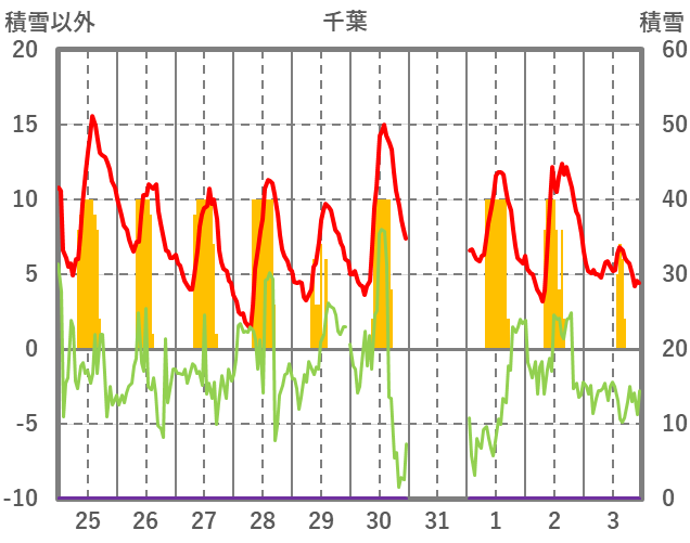| 日 | 時 | 気温 | 降水 | 風向/風速 | 日照 | 積雪 | 降雪 |
