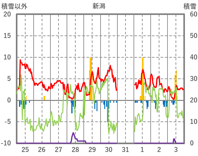 | 日 | 時 | 気温 | 降水 | 風向/風速 | 日照 | 積雪 | 降雪 |